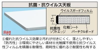 豊富なバリエーションのサカエ天板。用途に合わせてお選び下さい。●外寸:W1800×D450×H21mm●天板種類:抗菌・抗ウイルス天板●天板カラー:ホワイト●天板厚:21mm