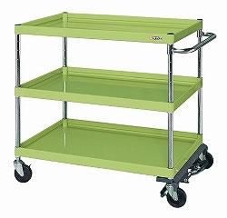 フットブレーキ付のため走行が安心・安全です。●外寸:W900×D600×H880mm●均等耐荷重:200kg●質量:36kg●本体色:グリーン●キャスター:100φゴム車