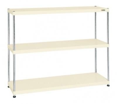 ダブルテーパーで簡単に棚板を皿型・フラット型に変更可能です。●外寸:W1500×D450×H1200mm●均等耐荷重(棚1連当り):750kg●均等耐荷重(棚板1段当り):75kg●段数:3段●カラー:アイボリー●質量:34kg●アジャスター:樹脂製 ネジ径M12×P1.75
