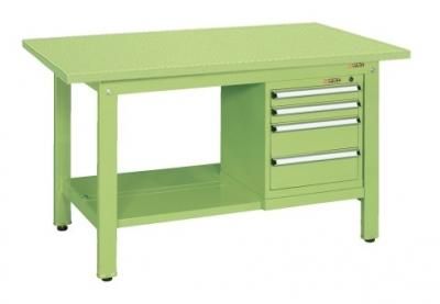 小物管理に優れたキャビネットを作業台へ組み込みました●外寸:W1500×D750×H740mm●均等耐荷重:350kg●質量:74kg●均等耐荷重(引出し1段当り):20kg●本体色:サカエグリーン●天板種類:スチール天板●天板カラー:グリーン●天板厚:25mm●アジャスター:樹脂製 ネジ径M12×P1.75
